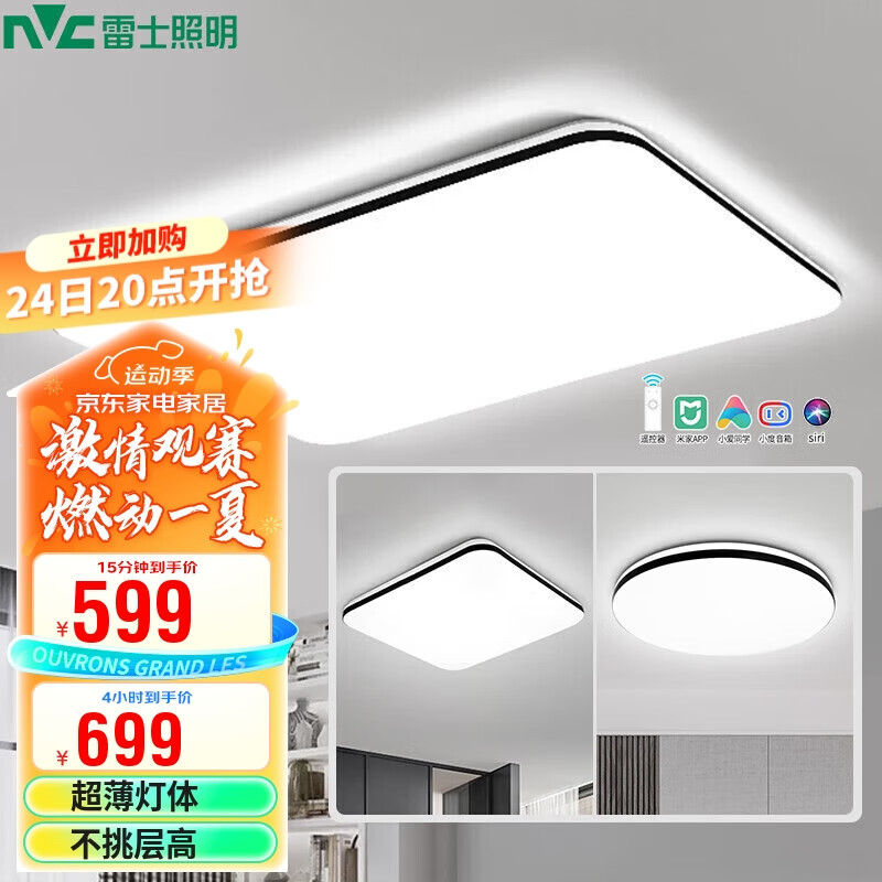 雷士照明(NVC)吸顶灯客厅大灯卧室餐厅灯具全屋套餐两室一厅A主灯智能价格:1099.00元!