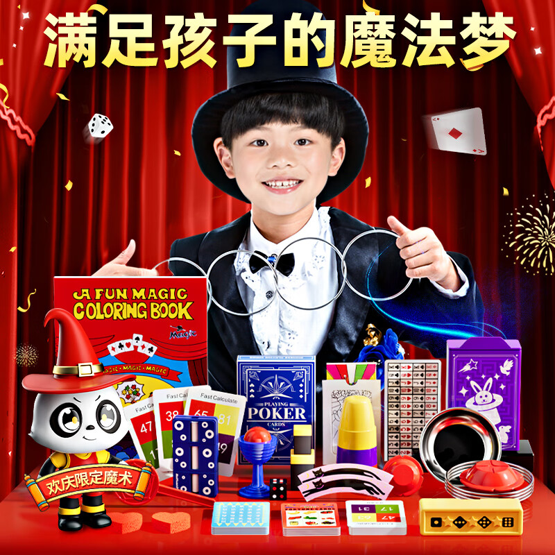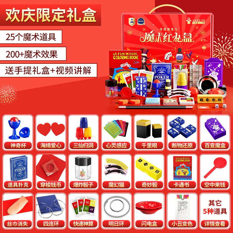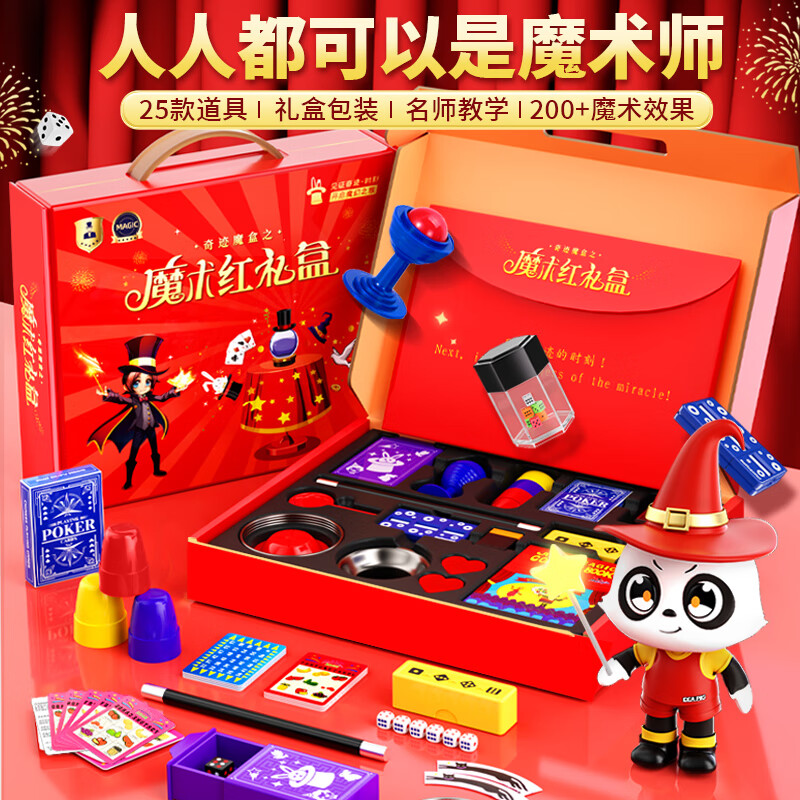 创意猪魔术道具儿童套装大礼盒7-13岁男孩生日礼物女孩玩具12小学生6108 红色礼盒【200种效果+25款道具】 送教学视频+包教包会|ABS材质+锻炼动手能力价格:128.00元!