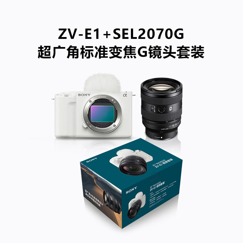 索尼(SONY)ZV-E1 全画幅Vlog旗舰微单相机 创意滤镜 AI智能芯片 白色+SEL2070G镜头套装 可升级至4K 120p价格:20698.00元!