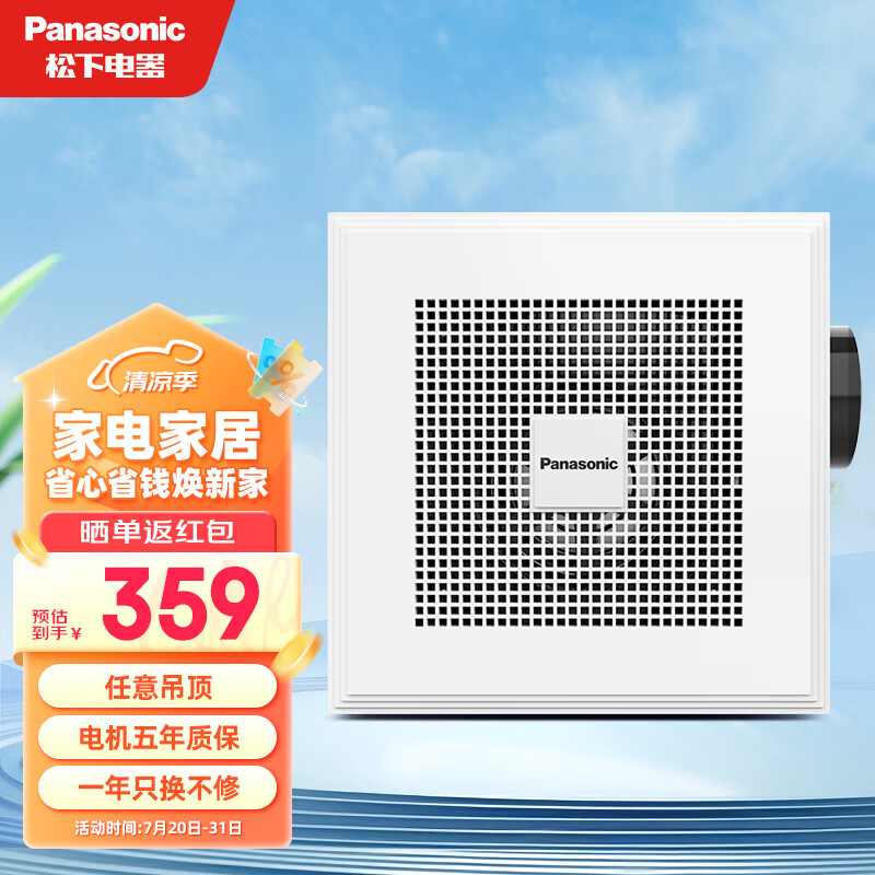 松下(Panasonic)排气扇吸顶式厨房抽风机吊顶卫生间强力排风扇通风管道换气扇 FV-RC14G1排风量120【通用吊顶】价格:359.00元!
