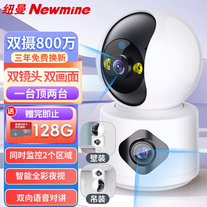 纽曼无线家用AI摄像头手机远程监控器360度无死角带夜视全景语音高清自动旋转可对话室内外家庭云台价格:149.00元!