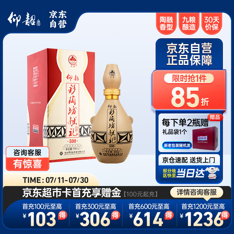 仰韶彩陶坊献礼500 陶融型白酒 50度 500ml 单瓶装 九种纯粮酒 送礼酒价格:77.00元!