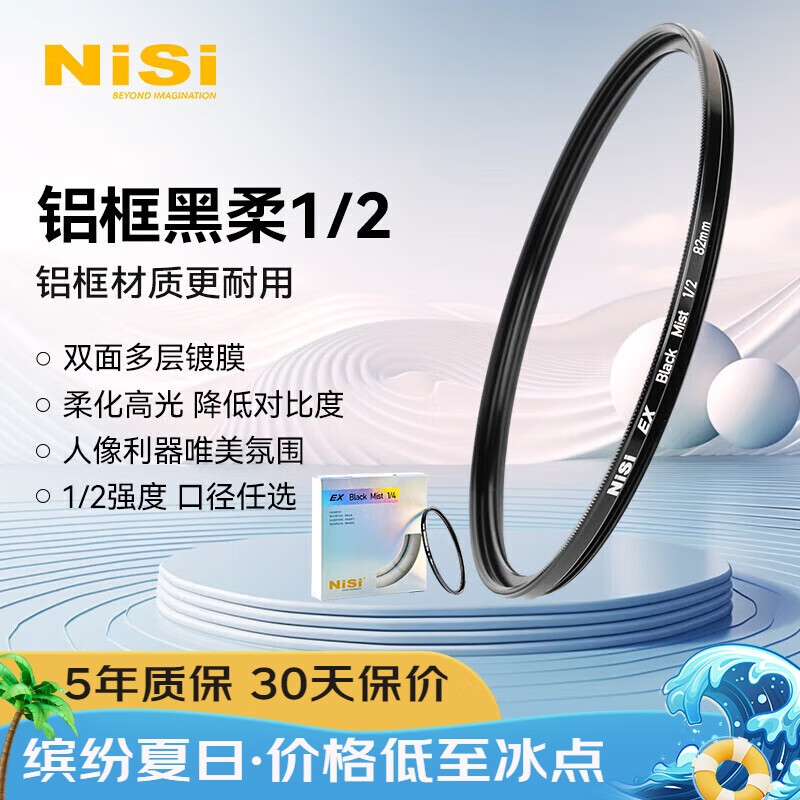 耐司(NiSi)黑柔滤镜 1/2 77mm ex铝框二分之一柔化镜柔焦镜朦胧镜人像拍摄美颜镜微单相机单反适用索尼佳能价格:218.00元!