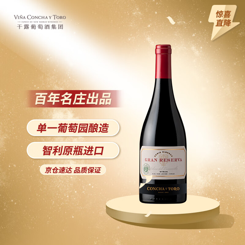 Concha y Toro干露典藏级西拉干红葡萄酒750ml单瓶 智利进口聚餐红酒价格:69.00元!