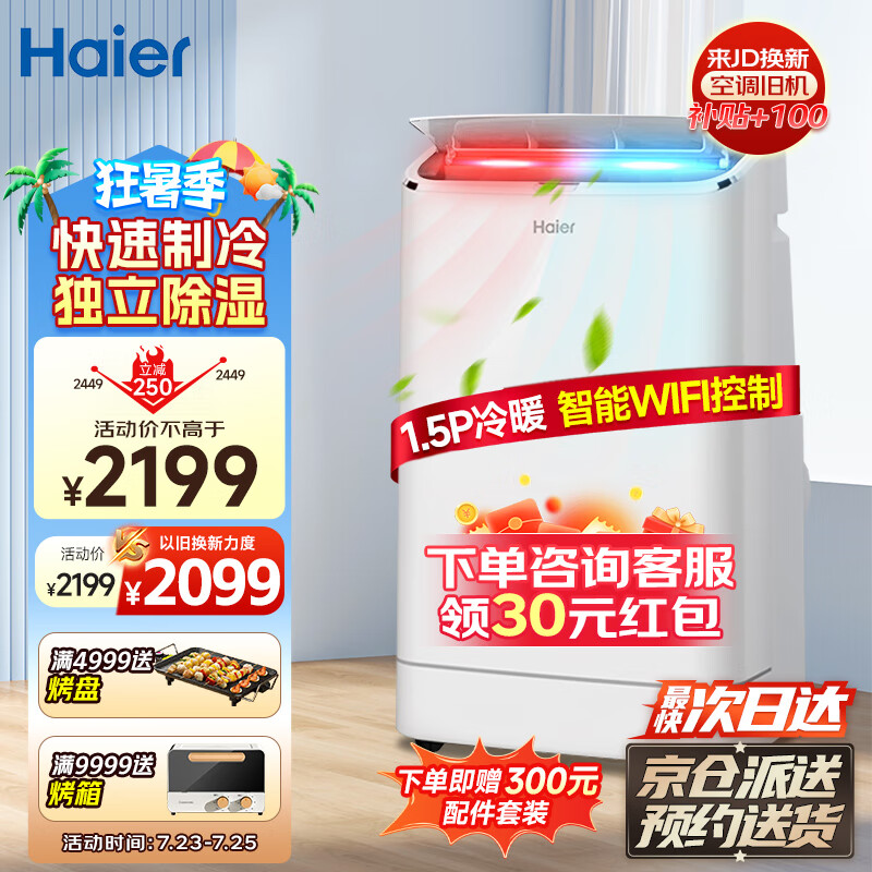海尔(Haier)1.5匹冷暖智能可移动空调一体机厨房客厅立式家用空调便携式空调KYR-35YD-B1U1 WIFI款价格:2199.00元!