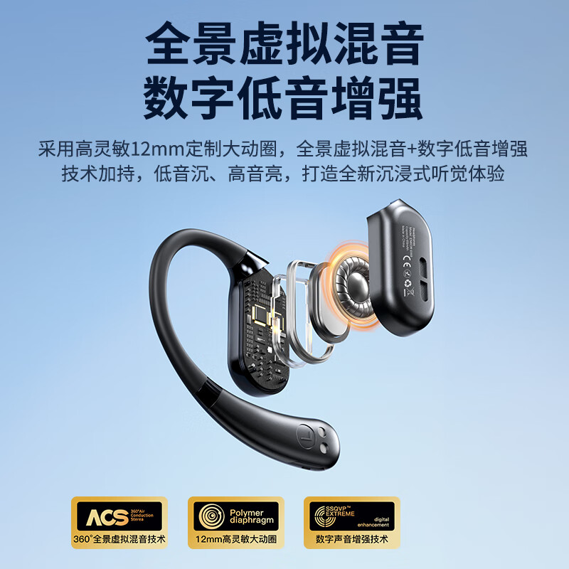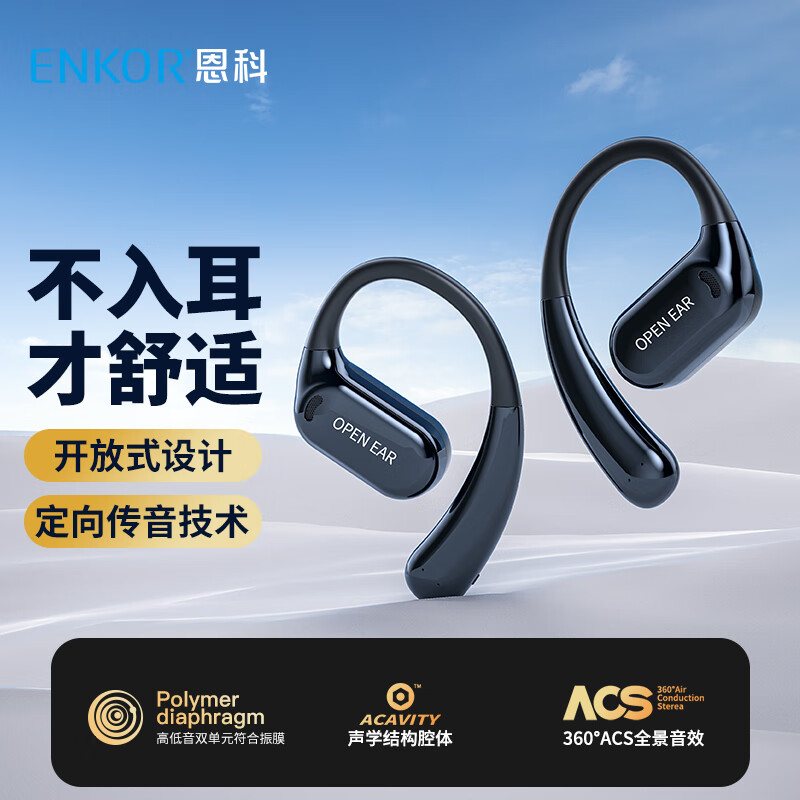 ENKOR恩科 开放式蓝牙耳机挂耳式不入耳骨传导概念运动跑步骑行通话降噪手机耳机价格:323.40元!