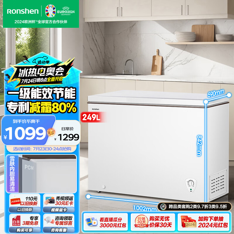 容声(Ronshen)249升低霜大容量冰柜家用商用冷藏冷冻转换冷柜 一级能效 雪糕冰柜 厨房卧式冰箱BD/BC-249ZMSMA价格:1099.00元!