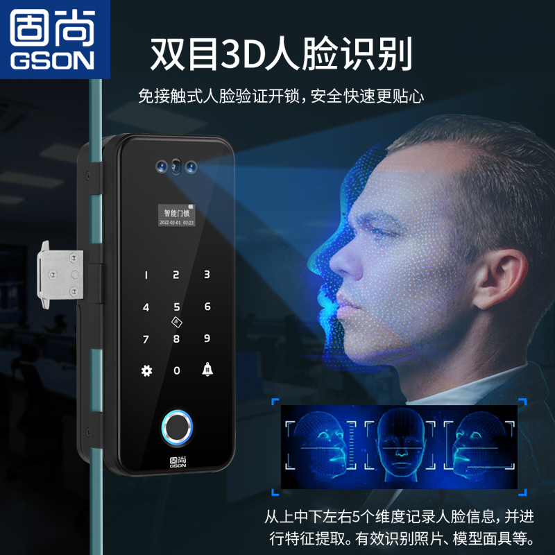 固尚GSON玻璃门指纹锁双开门密码锁办公室智能人脸识别电子门禁锁价格:850.00元!