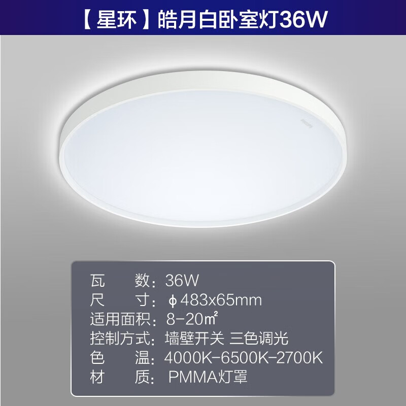 飞利浦36W三色 星环白边配置参数: