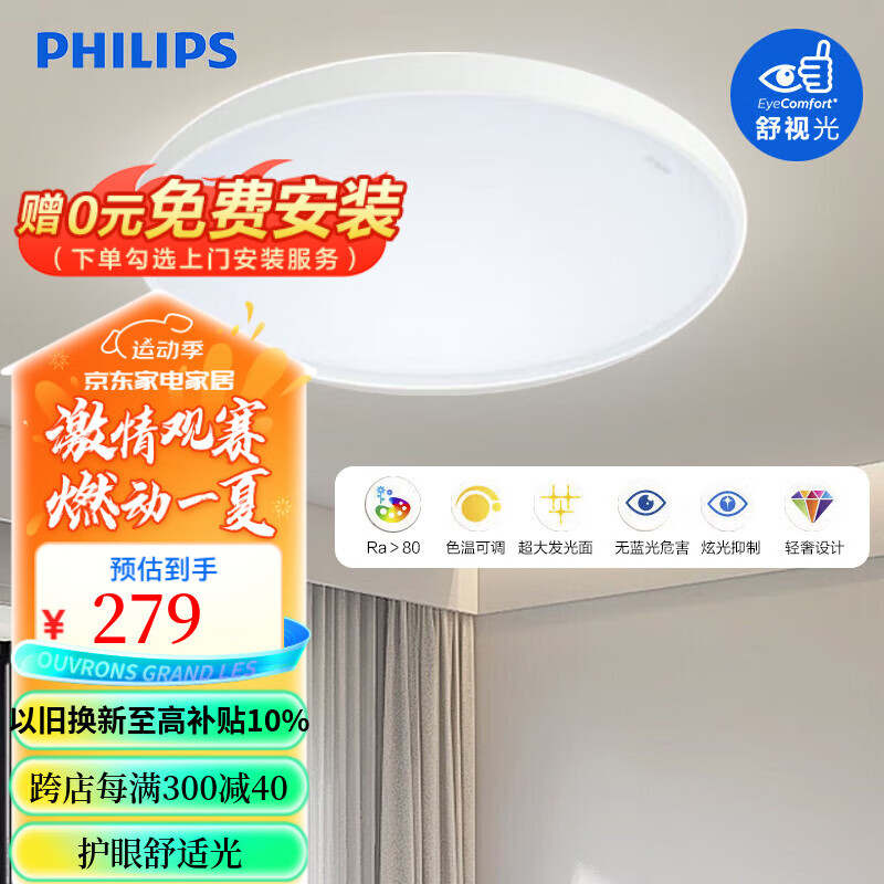 飞利浦(PHILIPS)led卧室灯吸顶灯房间主卧书房客厅现代简约灯具36W三色 星环白边价格:239.00元!