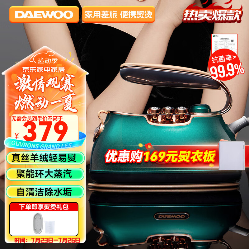 大宇(DAEWOO)手持挂烫机家用熨烫机电熨斗 小星斗增压蒸汽熨衣机 旅游出差便携式小型除菌除螨HI-036 赫本绿价格:379.00元!