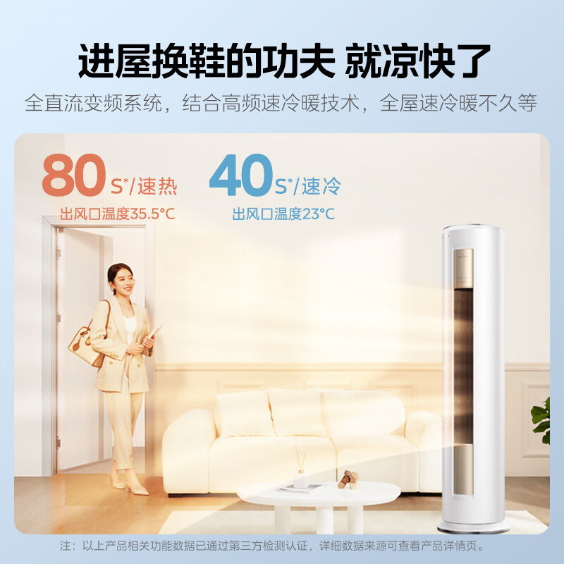 美的(Midea)2匹 京飒 新一级能效 变频冷暖 自清洁 客厅圆柱空调立式柜机 KFR-51LW/N8MJD1价格:6099.00元!