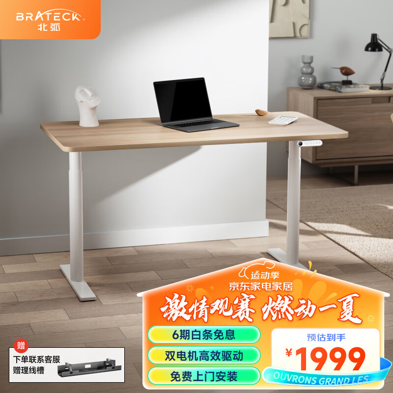 Brateck双电机电动升降电脑桌 北弧站立办公升降书桌 升降台 M1黄1.5米价格:2279.00元!