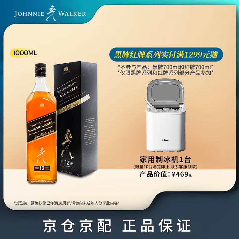 尊尼获加(JOHNNIE WALKER)洋酒 黑牌黑方 12年苏格兰调和型威士忌1000ml盒装价格:218.00元!