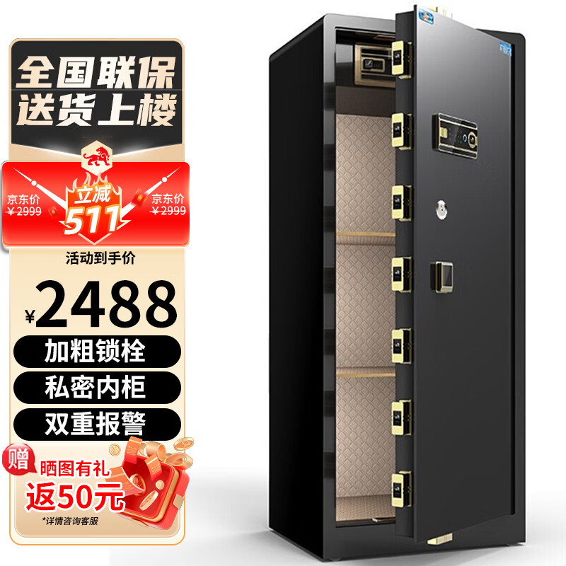 虎牌保险柜家用办公大型型指纹密码保险箱全钢防盗财务专用入墙保密保管柜 博瑞系列 150cm 钢琴黑价格:2938.00元!