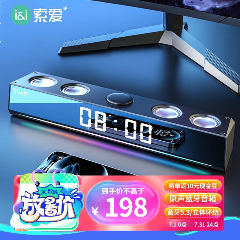 索爱(soaiy)电脑音响SH18蓝牙音箱家用桌面低音炮 时钟多媒体台式机笔记本USB迷你小钢炮 时钟版黑价格:198.00元!