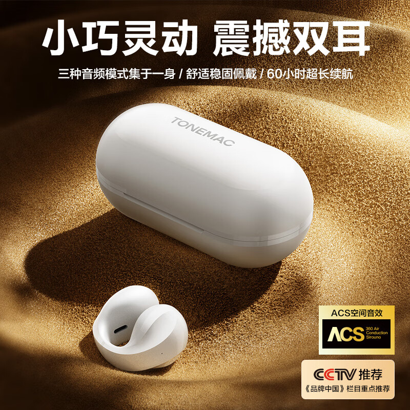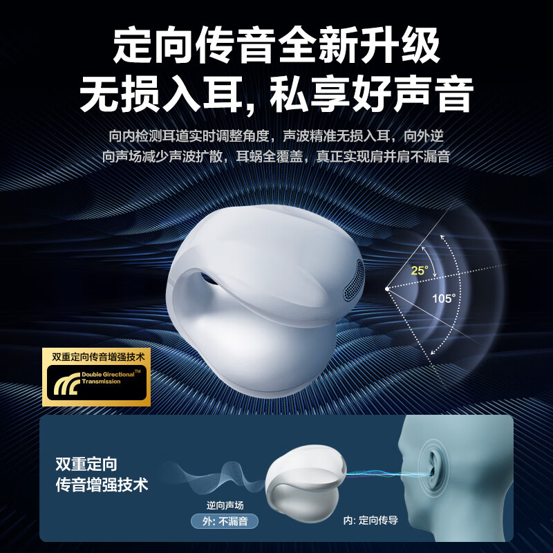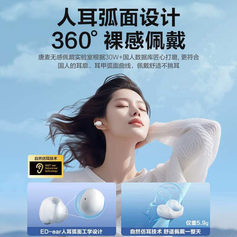 唐麦Q3【金标HIFI音质】 骨传导概念蓝牙耳机无线耳夹式不入耳挂耳式运动通话降噪适用华为小米价格:299.00元!