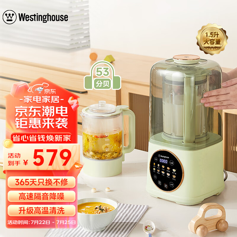 西屋(Westinghouse)柔音破壁机家用豆浆机加热全自动榨汁机搅拌机降噪辅食机 WPB15J8抹茶绿(双杯款)价格:579.00元!