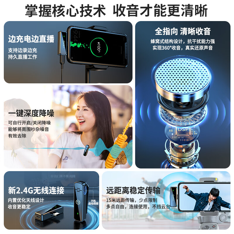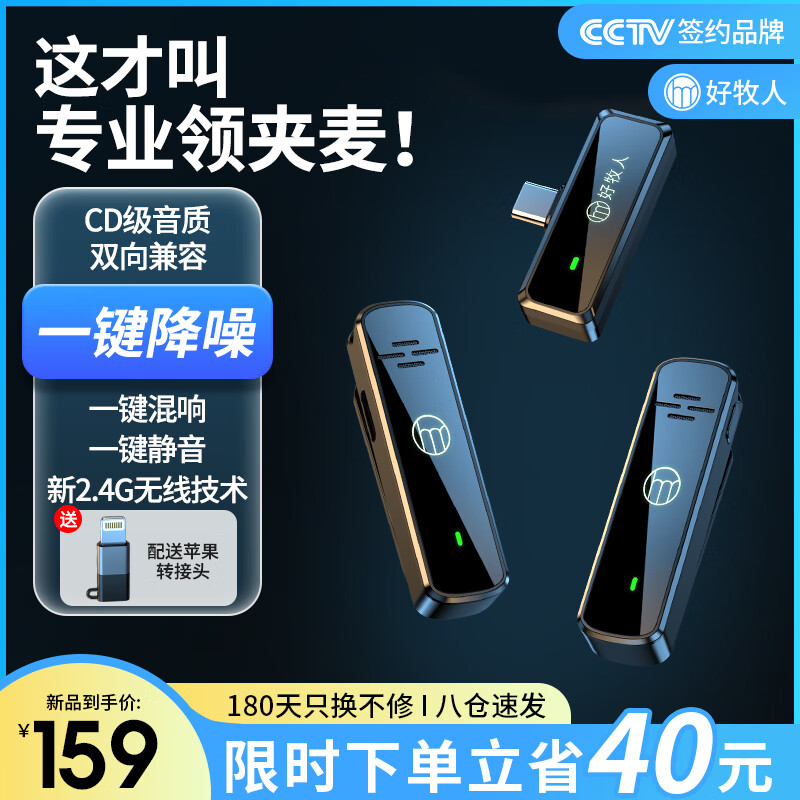 好牧人V1无线领夹麦克风小蜜蜂收音麦户外专业降噪采访拍视频专用抖音主播录音直播设备手机话筒一拖二价格:187.00元!