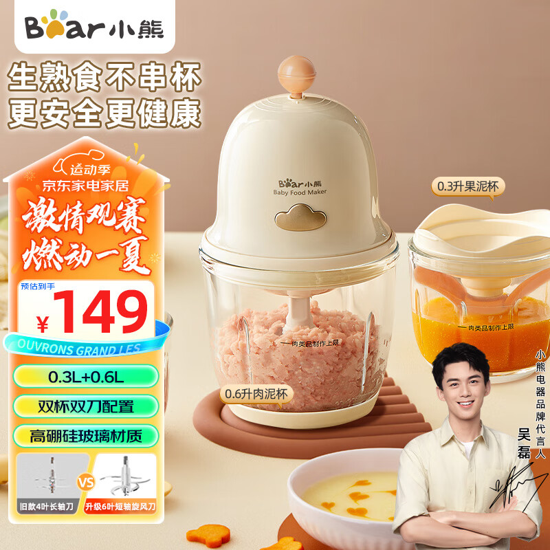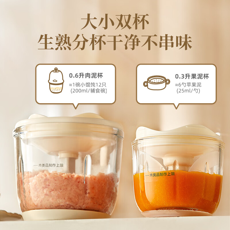 小熊(Bear)绞肉机家用 婴儿宝宝辅食机 小型绞馅机 捣蒜器蒜蓉机 碎肉机打肉机 大小双杯QSJ-C01T1 0.6+0.3L价格:149.00元!