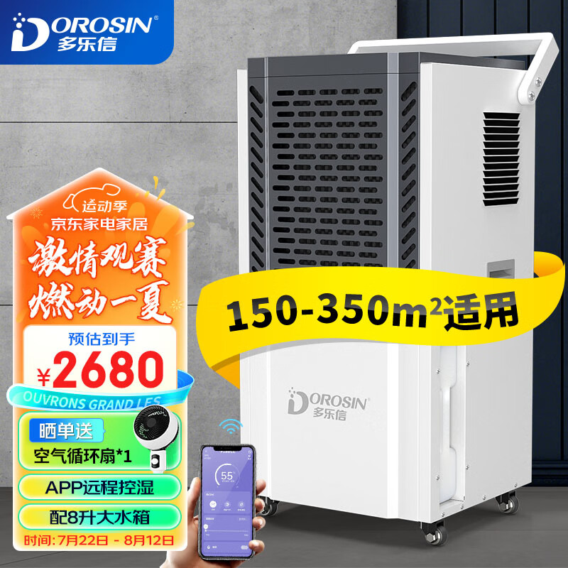 多乐信(DOROSIN) 工业除湿机/抽湿机 松下压缩机 适用150-350平方米 地下室工业商用大功率除湿器DK-150水箱款价格:2980.00元!