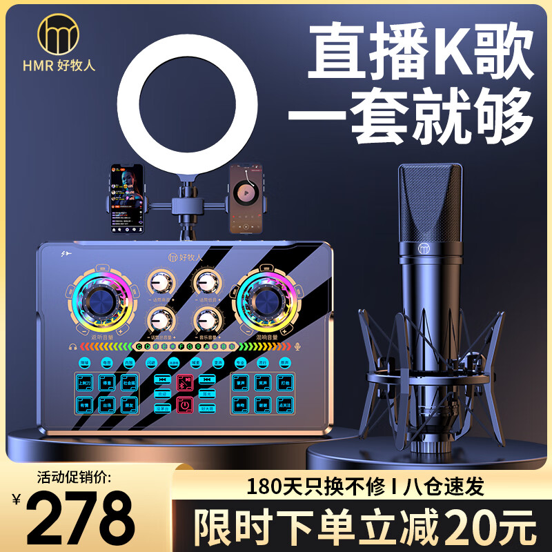 好牧人直播设备全套声卡套装手机唱歌专用k歌神器麦克风抖音网红主播户外唱歌专业录音电容麦话筒电脑价格:298.00元!