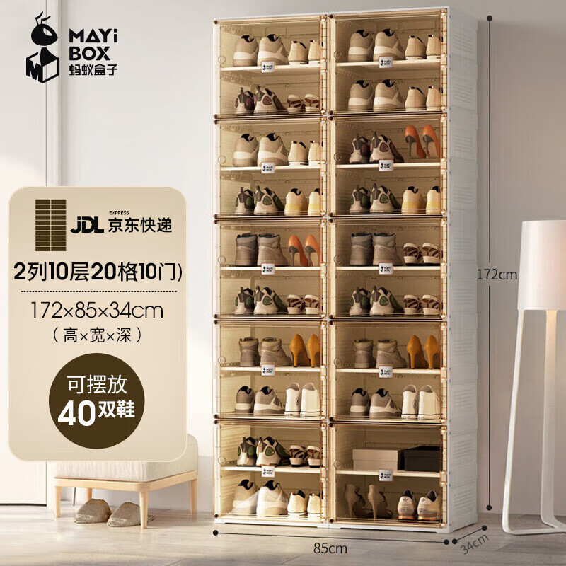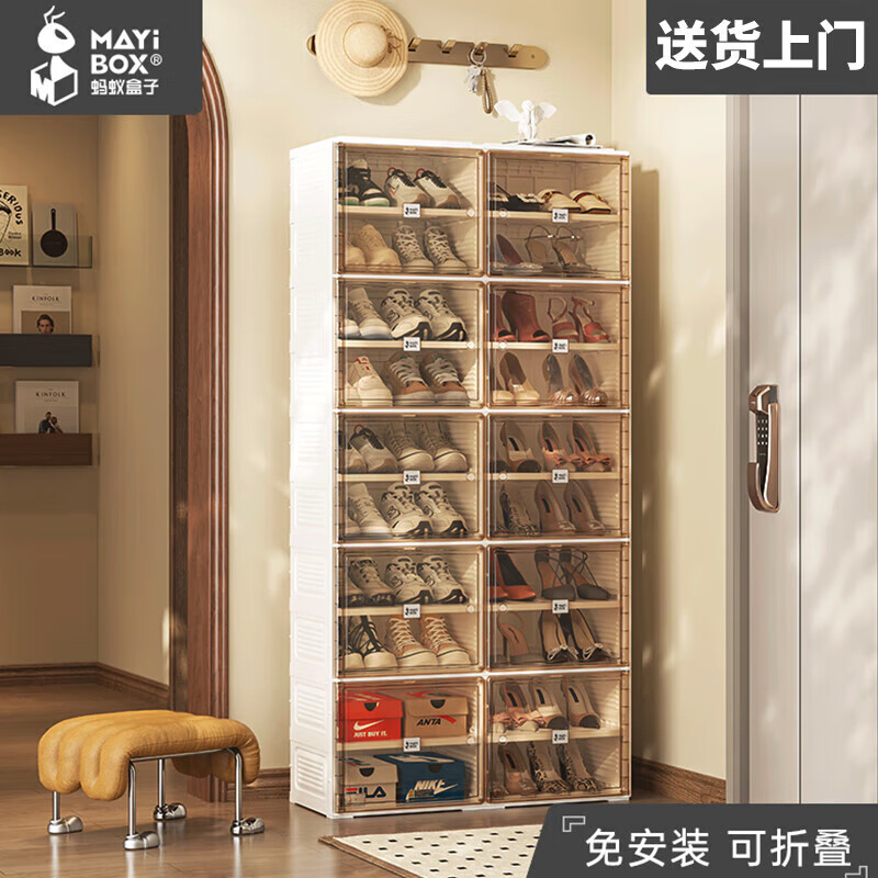 蚂蚁盒子免安装简易鞋柜门口家用折叠透明塑料超薄收纳架 鞋柜2列10层20格价格:619.00元!