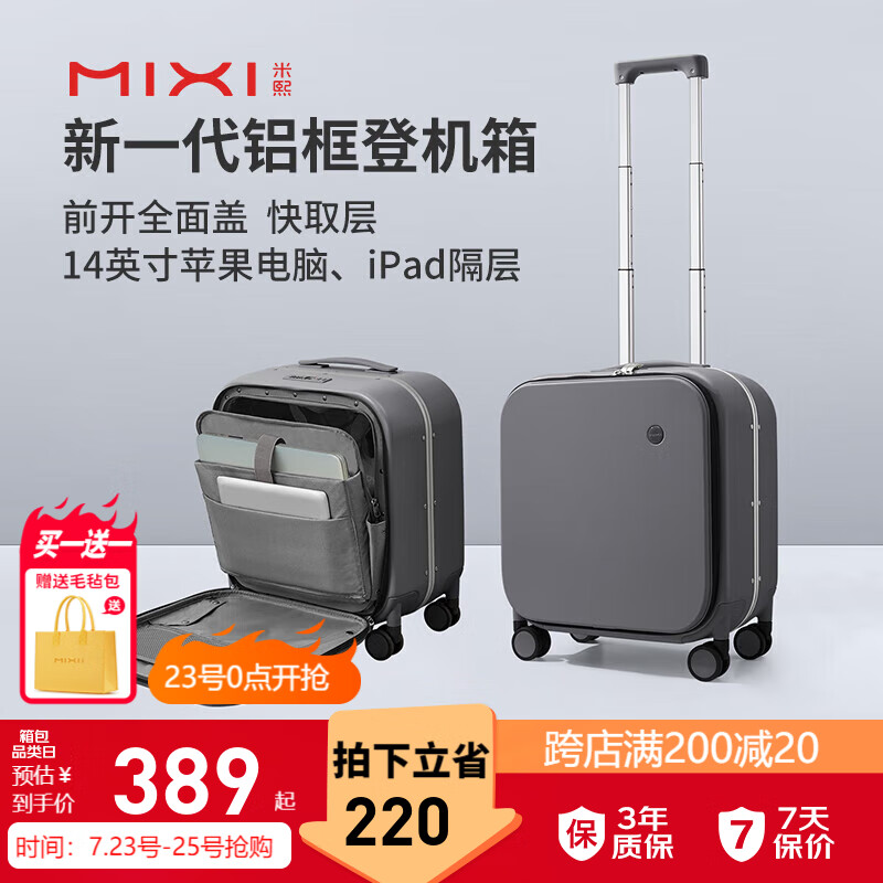 米熙前开盖拉杆箱子行李箱男登机箱铝框箱密码箱旅行箱18英寸矿岩灰60价格:609.00元!
