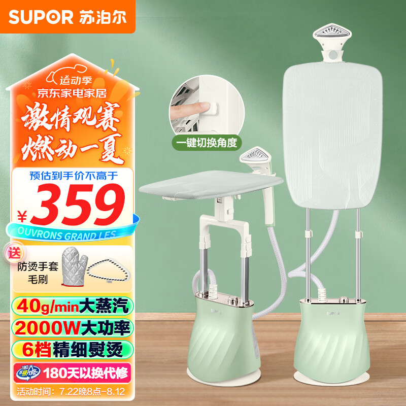 苏泊尔(SUPOR)【超宽熨衣板】挂烫机家用双杆大功率手持熨烫机高效杀菌蒸汽挂烫机可分离水箱服装店熨衣机205A 价格:359.00元!