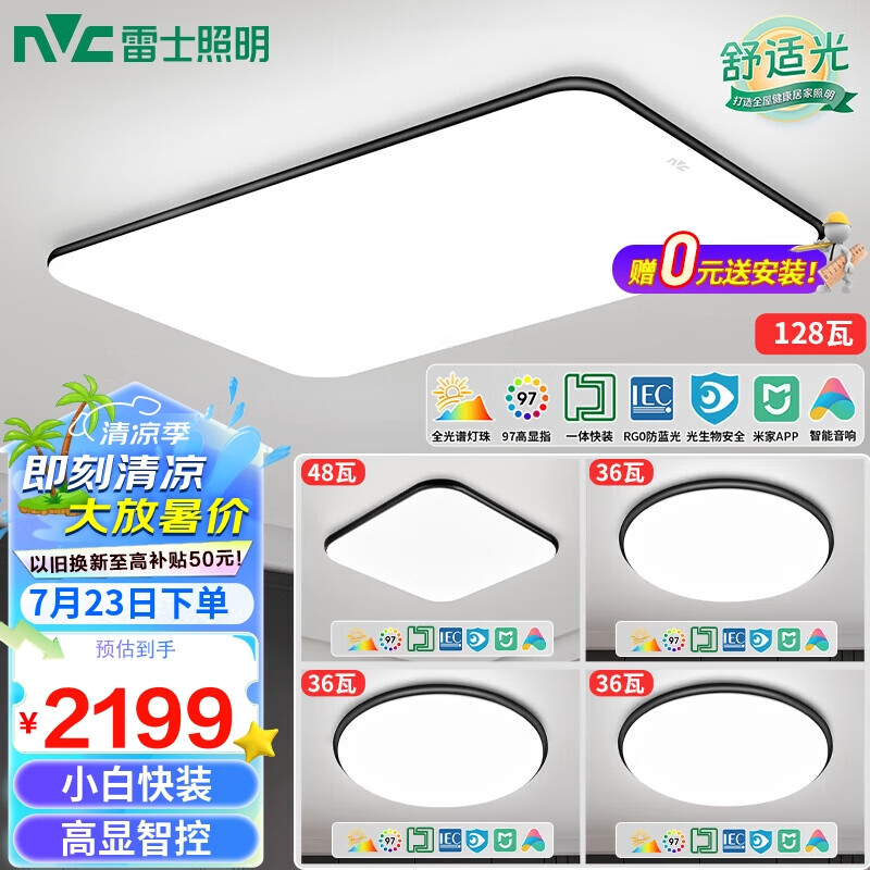 雷士(NVC)吸顶灯客厅大灯现代led照明全屋米家智能套餐小白灯黑潮S舒适光价格:2748.00元!
