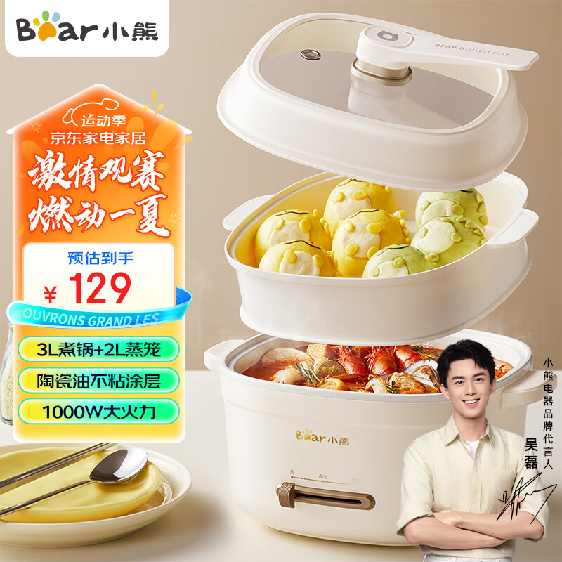小熊(Bear)电煮锅 泡面火锅宿舍小电锅 多功能多用途电热锅 3L蒸煮一体蒸屉蒸笼DRG-E30U8价格:129.00元!