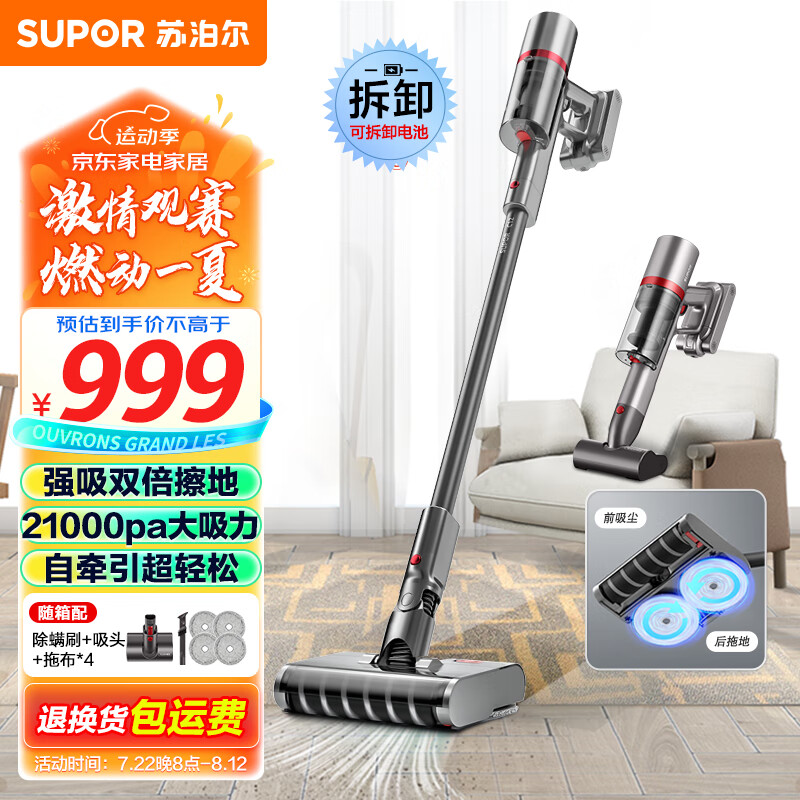 苏泊尔(SUPOR )手持无线吸尘器家用洗地机吸拖一体全自动大吸力拖地机电动拖把宠物家庭适用EVS-C12价格:999.00元!