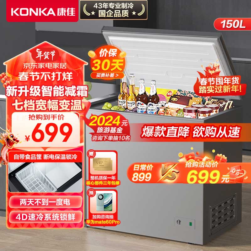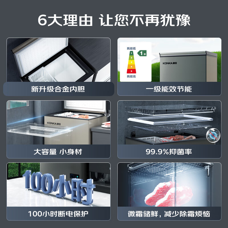 康佳150升低霜小冰柜一级能效家用商用 冷藏柜冷冻柜顶开卧式两用冷柜小型租房用母婴母乳小冰箱BG15JD价格:698.00元!