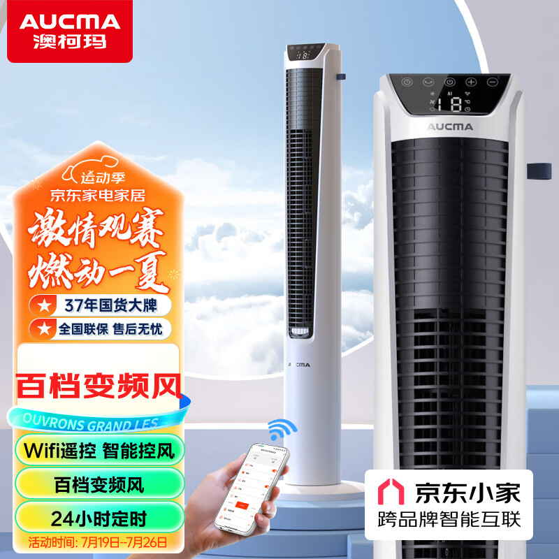 澳柯玛(AUCMA)京东小家智能生态/百档变频直流/办公室无叶风扇/塔式电风扇WiFi控制家用塔扇落地扇 X7价格:288.00元!