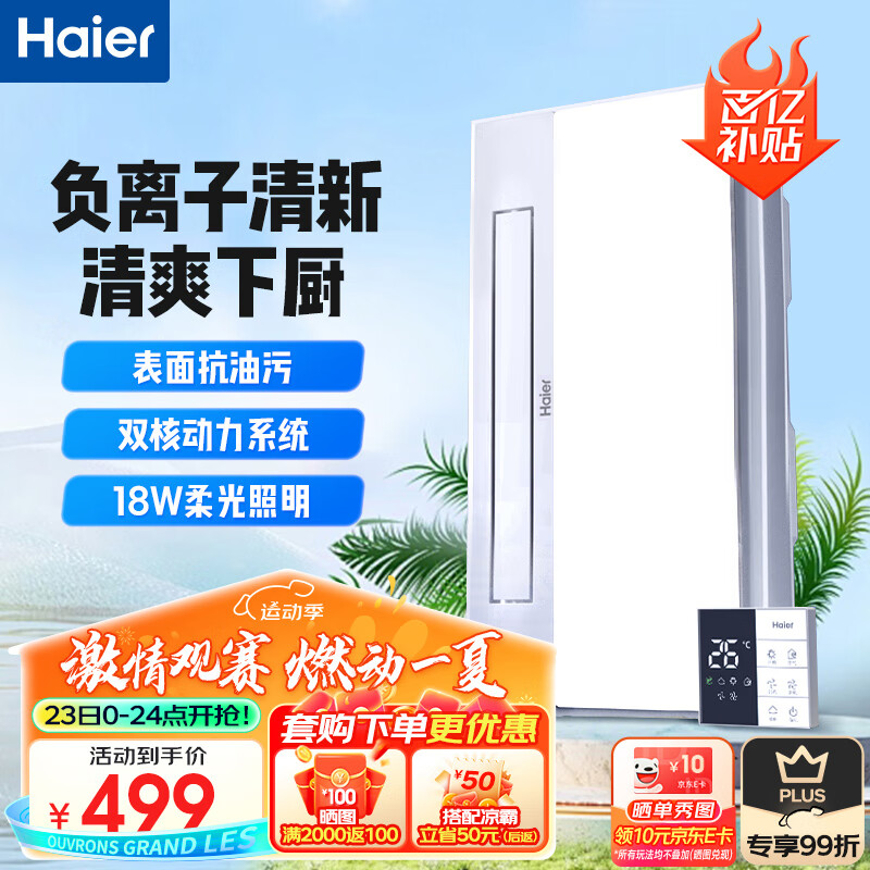 海尔(Haier)凉霸厨房换气照明三合一厨房冷风机吸顶式冷霸数字显示XL7价格:599.00元!