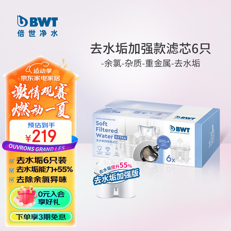 倍世(BWT) 欧洲原装进口第4代去水垢加强款滤芯 过滤净水壶滤水净水器滤芯去垢力提升55% 增强款6只装价格:339.00元!
