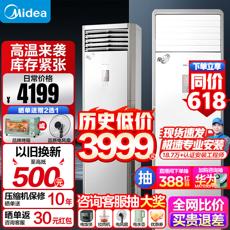 美的(Midea)美的空调大2匹柜机新能效变频冷暖客厅企业商用商铺餐厅立式大出风口强劲风空调 新风客价格:3999.00元!