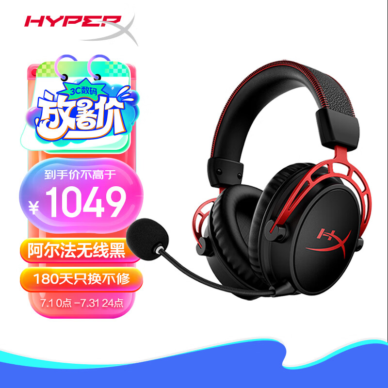 极度未知(HYPERX)AlphaWireless阿尔法无线游戏耳机头戴式电竞2.4g无线吃鸡电竞头戴式耳机带麦300小时续航超长续航价格:1049.00元!