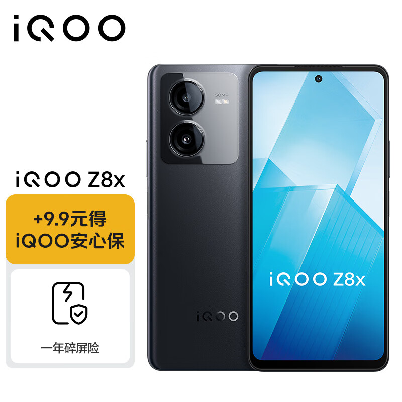vivo 【iQOO安心保-一年碎屏保】 iQOO Z8x 8GB+128GB 曜夜黑 6000mAh巨量电池 骁龙6Gen1 5G手机价格:1108.90元!