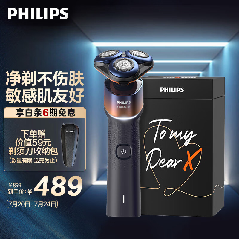 飞利浦(PHILIPS)电动剃须刀 5X活力橙告白礼盒 SkinEase肌肤感应科技智能舒缓刮胡刀送男友送老公七夕情人节礼物价格:489.00元!