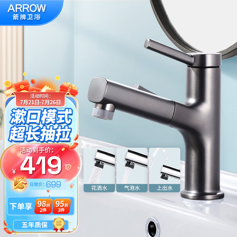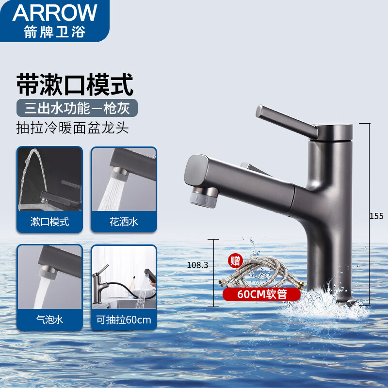 箭牌(ARROW)面盆水龙头洗手盆洗面盆浴室卫生间阳台抽拉式冷热枪灰台盆水龙头价格:419.00元!
