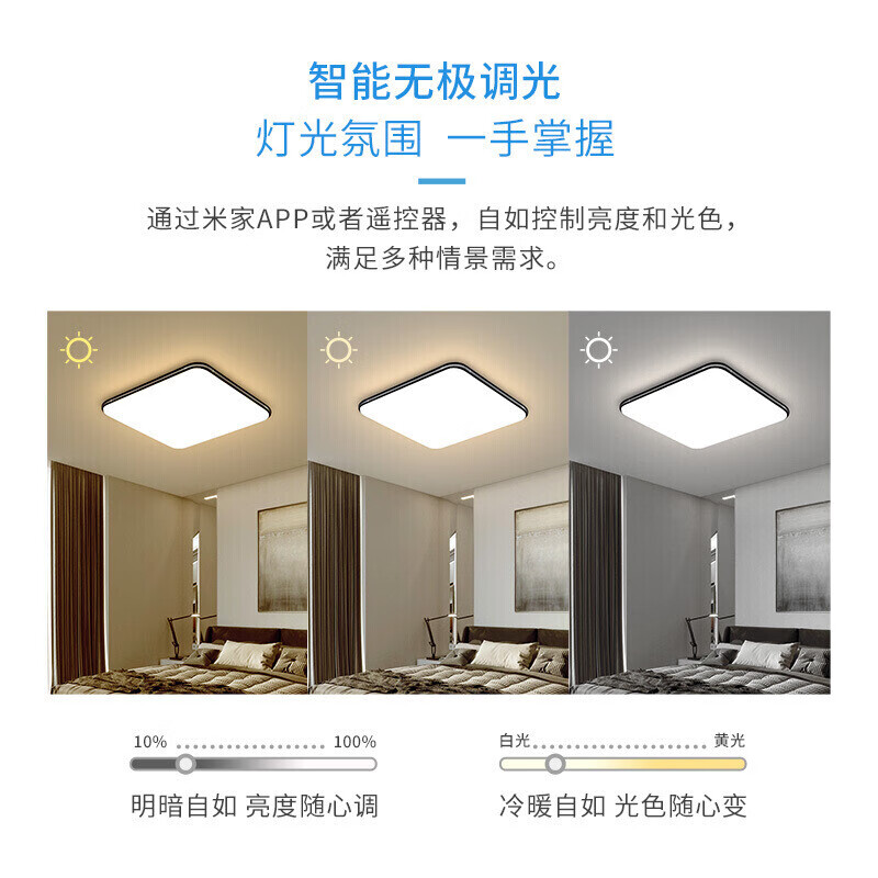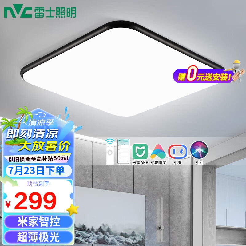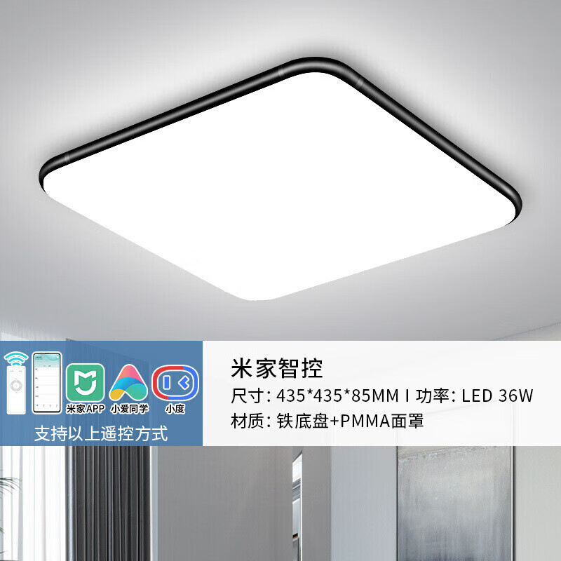 雷士(NVC)LED传统吸顶灯 卧室餐厅书房灯具 现代简约AI语音控制方形灯饰价格:299.00元!