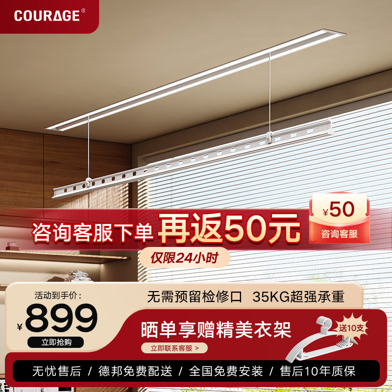 卡瑞琪(COURAGE)电动晾衣架隐形阳台家用隐藏式晾衣架多功能升降薄晒衣架 米家2米价格:1449.00元!