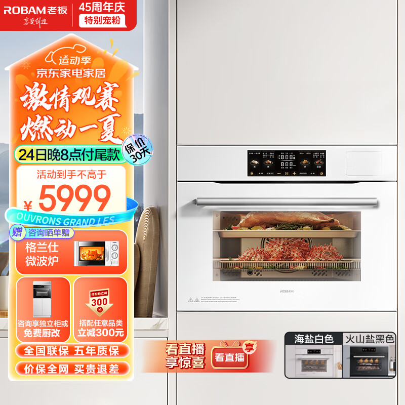 老板(Robam)盐系G1海盐白蒸烤箱一体机嵌入式彩屏EXP专业控温蒸烤炸焗家用55L搪瓷蒸箱自清洁保温箱C90A-G1价格:5998.00元!