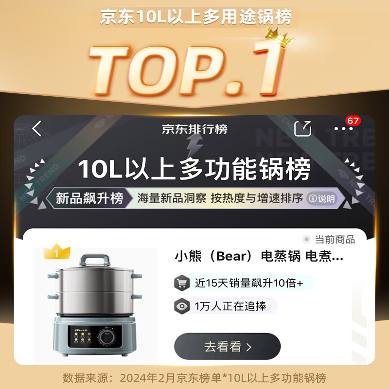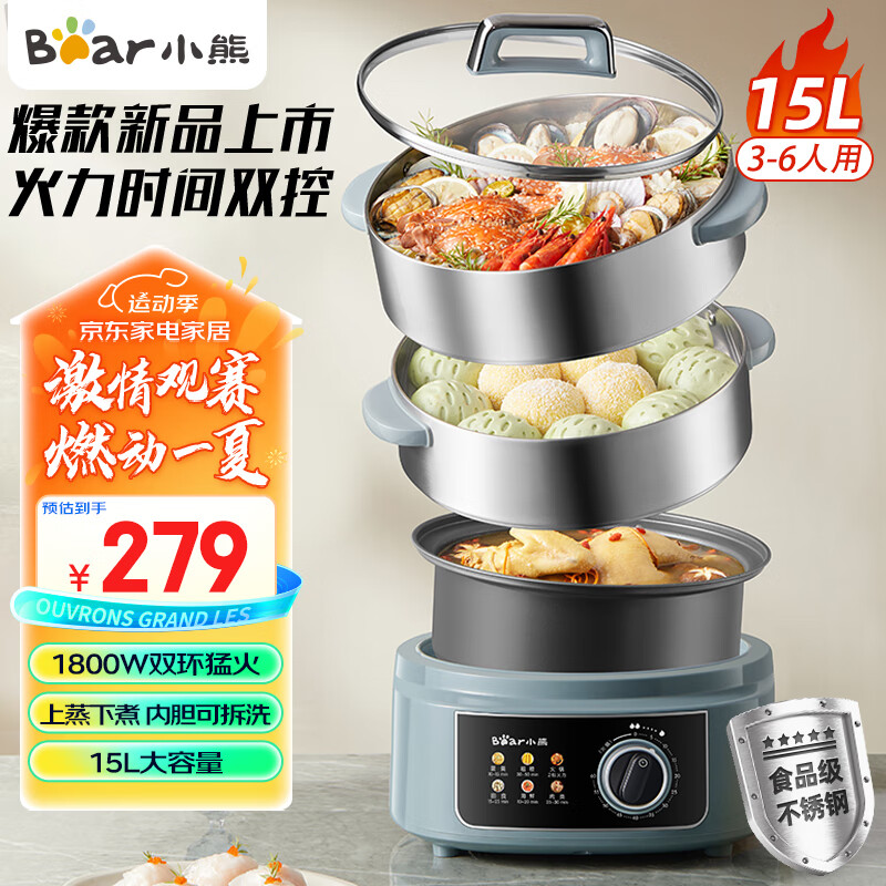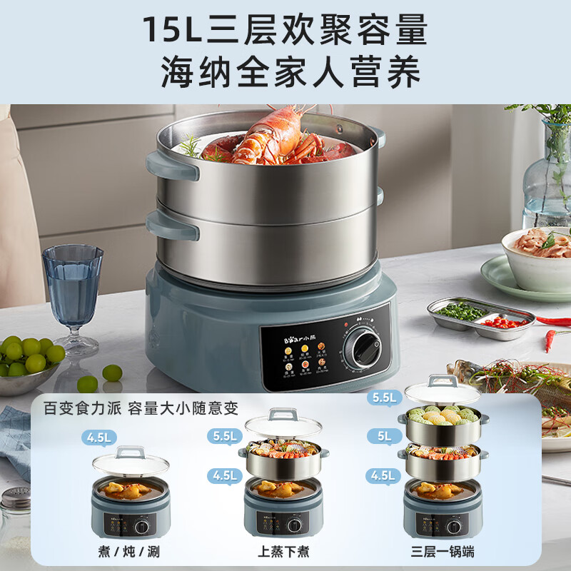 小熊(Bear)电蒸锅 电煮锅 电火锅 家用多功能蒸包子锅 15升大容量电热锅 分体式可拆洗多用途锅DZG-E45K5价格:279.00元!