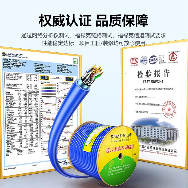 山泽 超六类双屏蔽网线 CAT6A类工程家装万兆网络宽带HSYPVP-6A 抗干扰降衰减纯铜线305米 LC6305价格:1359.00元!