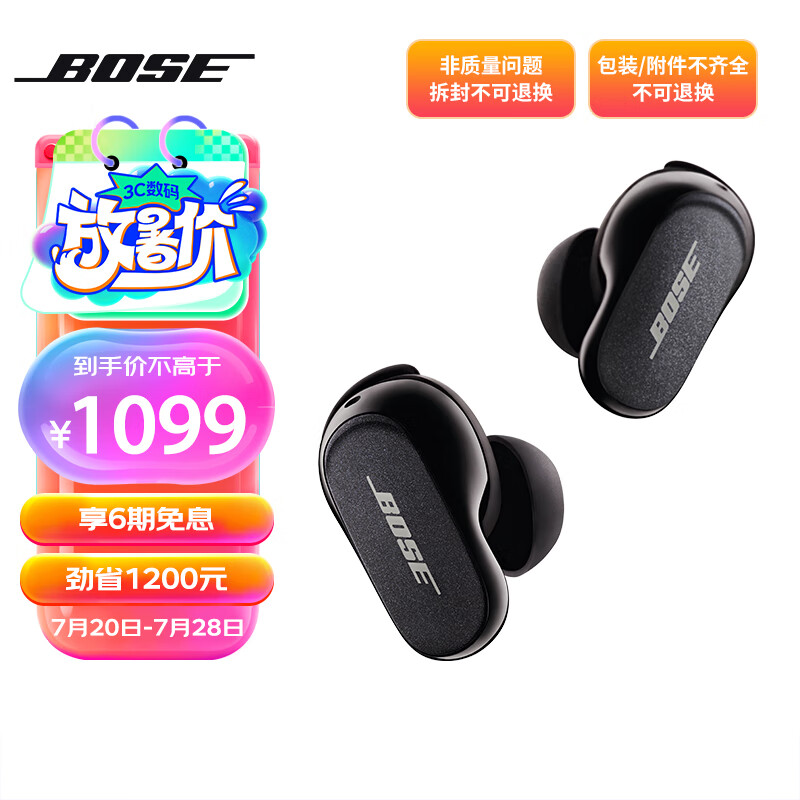 Bose QC消噪耳塞II-黑色 大鲨二代 真无线入耳式蓝牙主动降噪耳机耳麦 智能音场调校 毫秒级精准消噪价格:1199.00元!