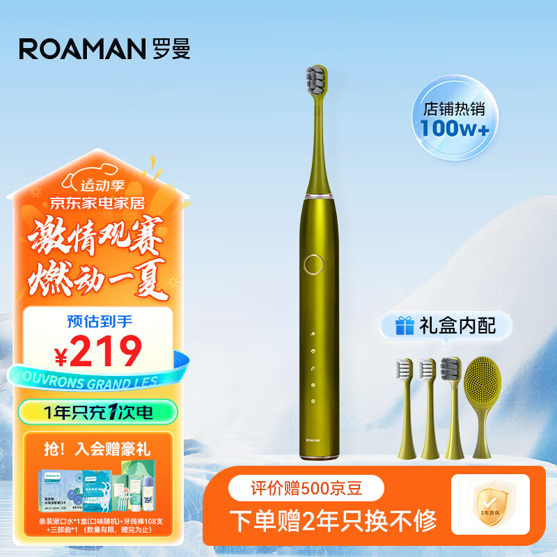 罗曼(ROAMAN)智能声波电动牙刷情侣款生日礼物 5种模式牙医推荐 网红小果刷1年续航 牛油果绿款价格:269.00元!