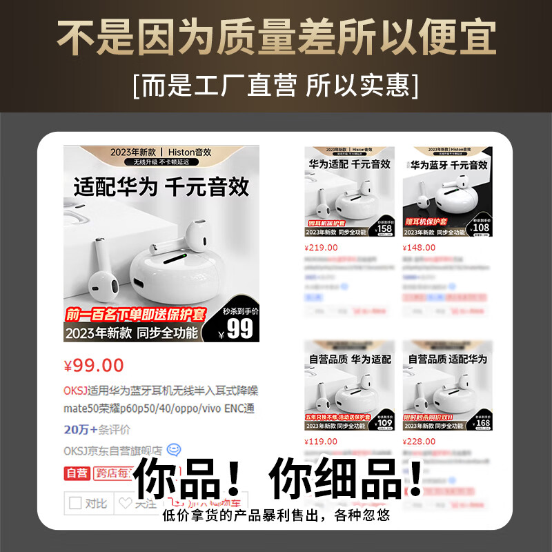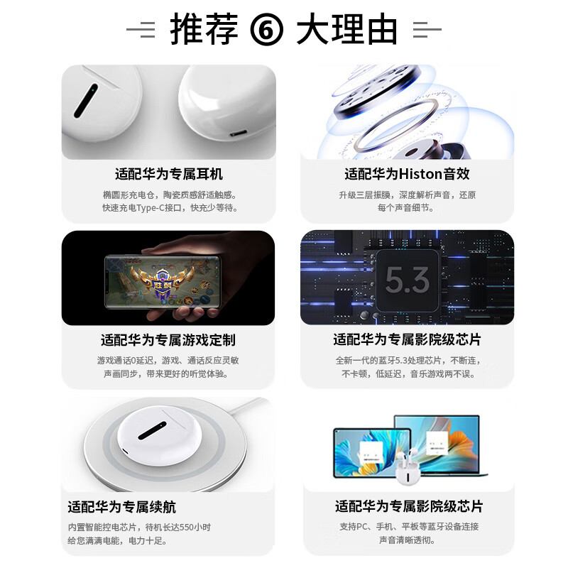 OKSJ适用华为蓝牙耳机无线半入耳式降噪mate50荣耀p60p50/40/oppo/vivo ENC通话降噪商务运动音乐耳机价格:104.00元!
