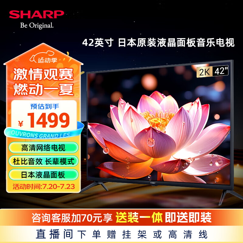 SHARP夏普2T-C42A7DA 42英寸 日本原装液晶面板 1+8G 杜比音效 智能UI系统 平板电视价格:1499.00元!